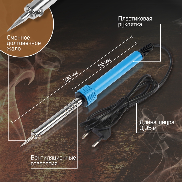 Паяльник ТУНДРА, пластиковая рукоятка, 60 Вт, 220 В