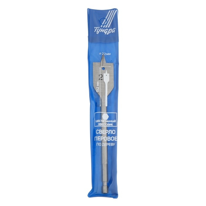 Сверло по дереву перовое ТУНДРА, шестигранный хвостовик, 22 х 152 мм