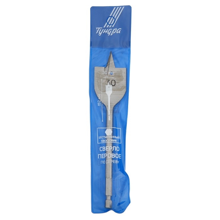 Сверло по дереву перовое ТУНДРА, шестигранный хвостовик, 30 х 152 мм