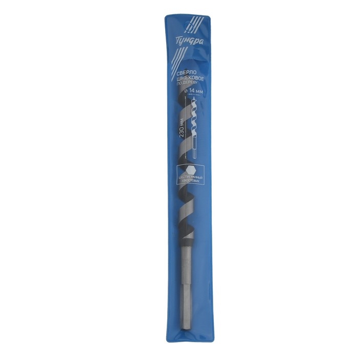 Сверло по дереву шнековое ТУНДРА, шестигранный хвостовик, 14 х 230 мм
