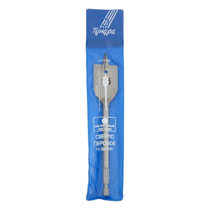 Сверло по дереву перовое ТУНДРА, шестигранный хвостовик, 25 х 152 мм