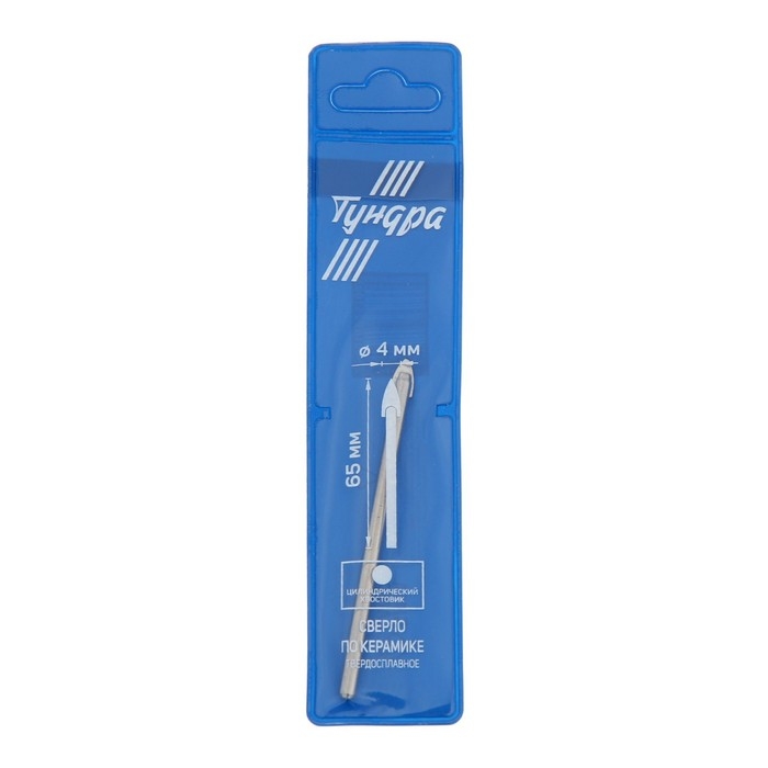 Сверло по керамике твердосплавное ТУНДРА, цилиндрический хвостовик, 4 мм