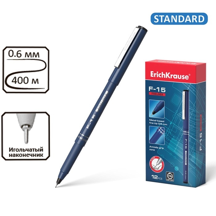 Ручка капиллярная Erich Krause F-15, узел 0.6 мм, чернила чёрные, длина линии письма 400 метров