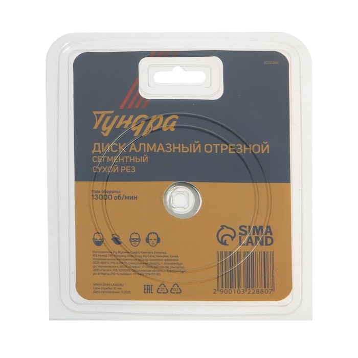 Диск алмазный отрезной сегментный ТУНДРА предназначен для работ с угловой шлифовальной машиной.