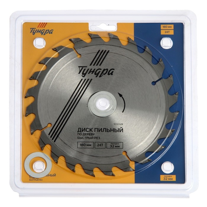 Диск пильный по дереву ТУНДРА, быстрый рез, 180 х 32 мм (кольца на 22,20,16), 24 зуба