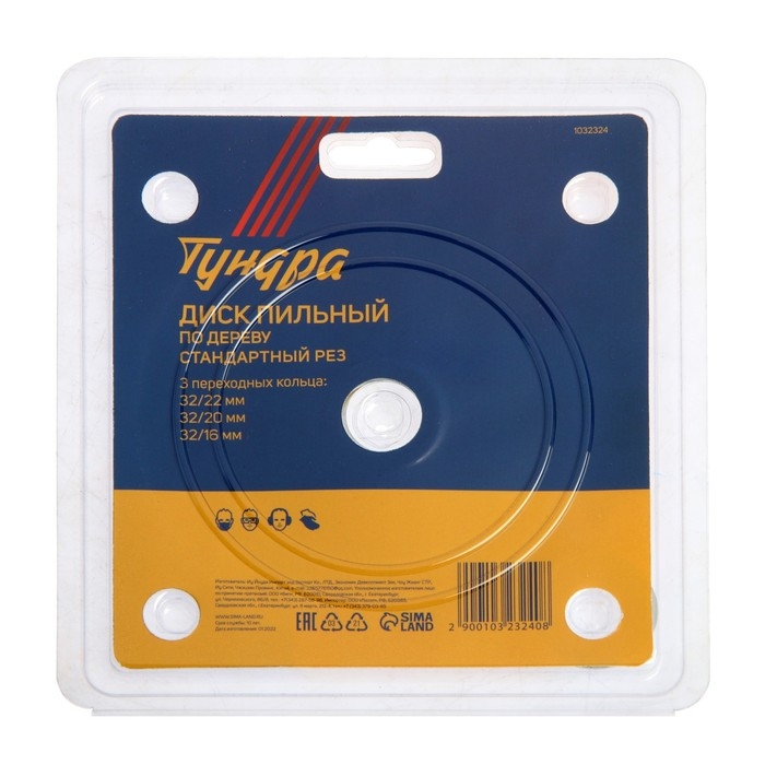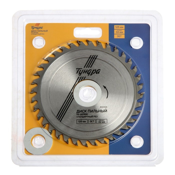Диск пильный по дереву ТУНДРА, стандартный рез, 125 х 32 мм (кольца на 22,20,16), 36 зубьев