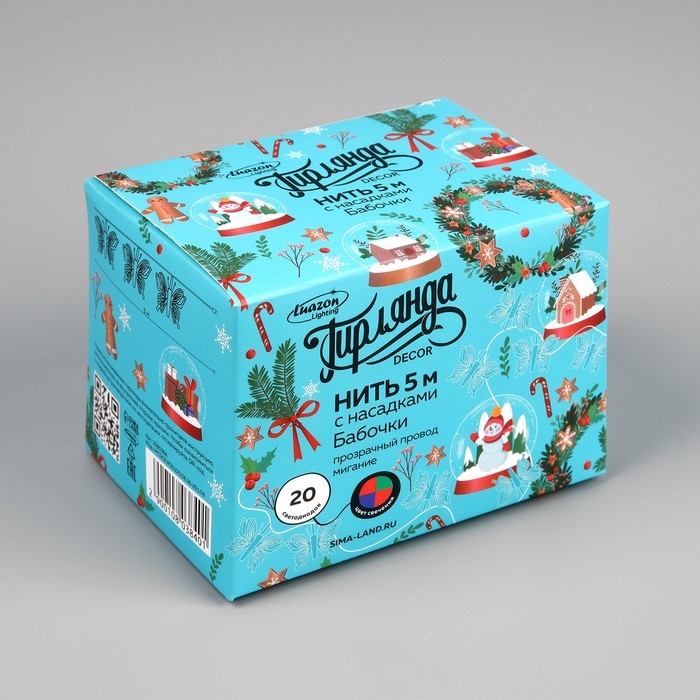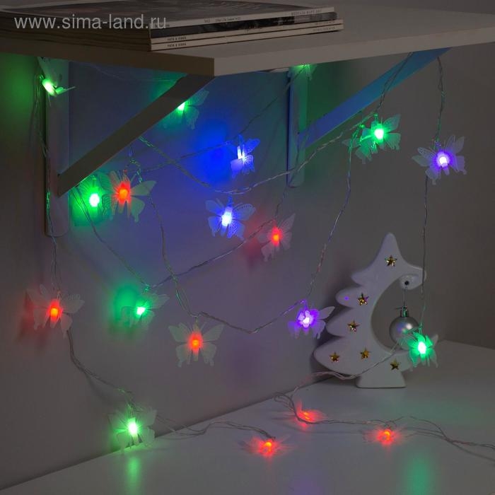 Гирлянда «Нить» 5 м с насадками «Бабочки малые», IP20, прозрачная нить, 20 LED, свечение мульти (RG/RB), мигание, 220 В