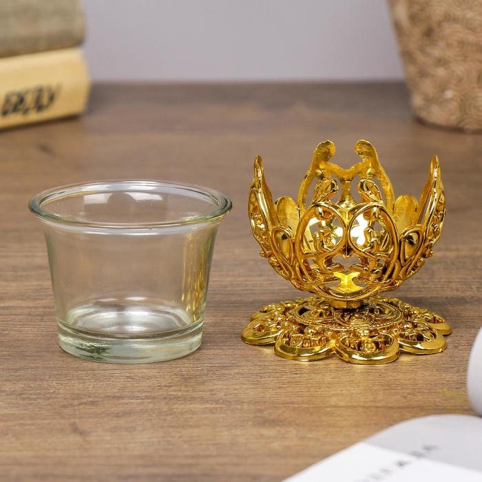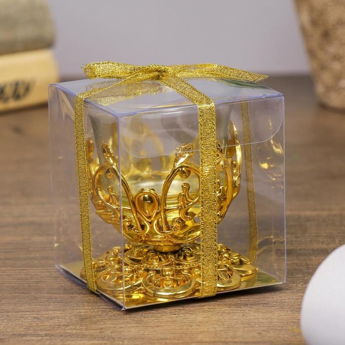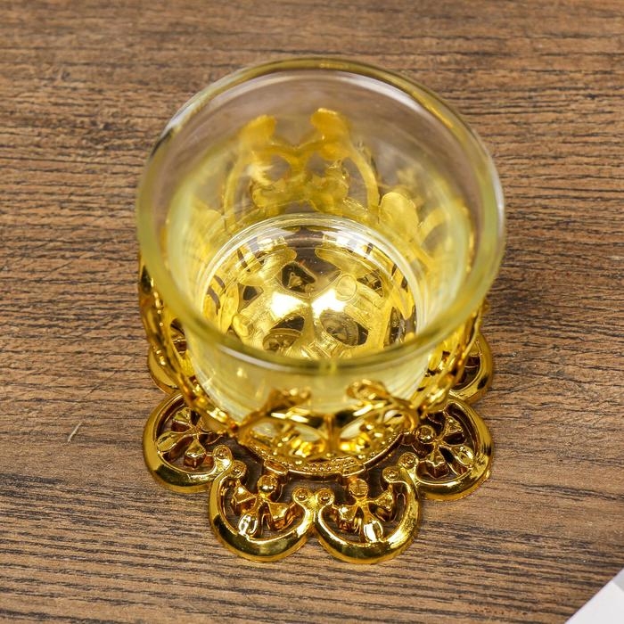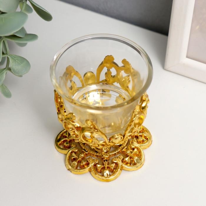 Подсвечник стекло 1 свеча "Узор", цвет золотистый