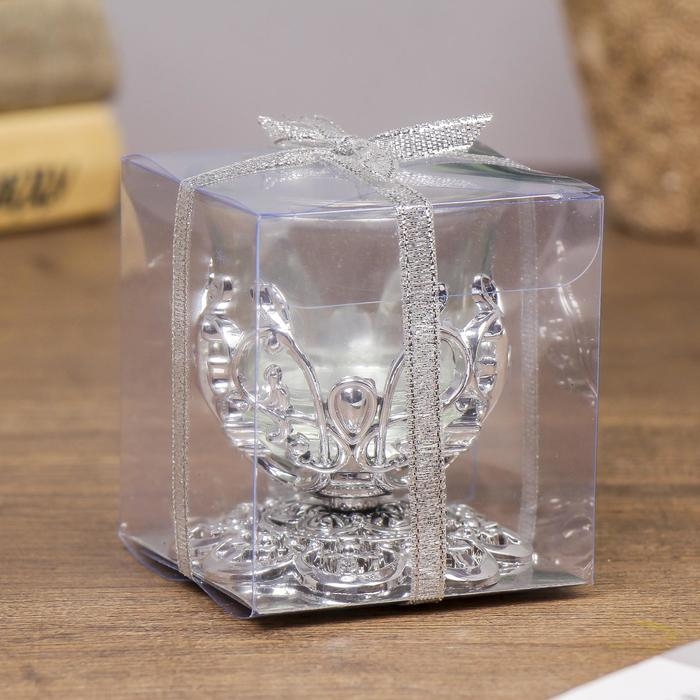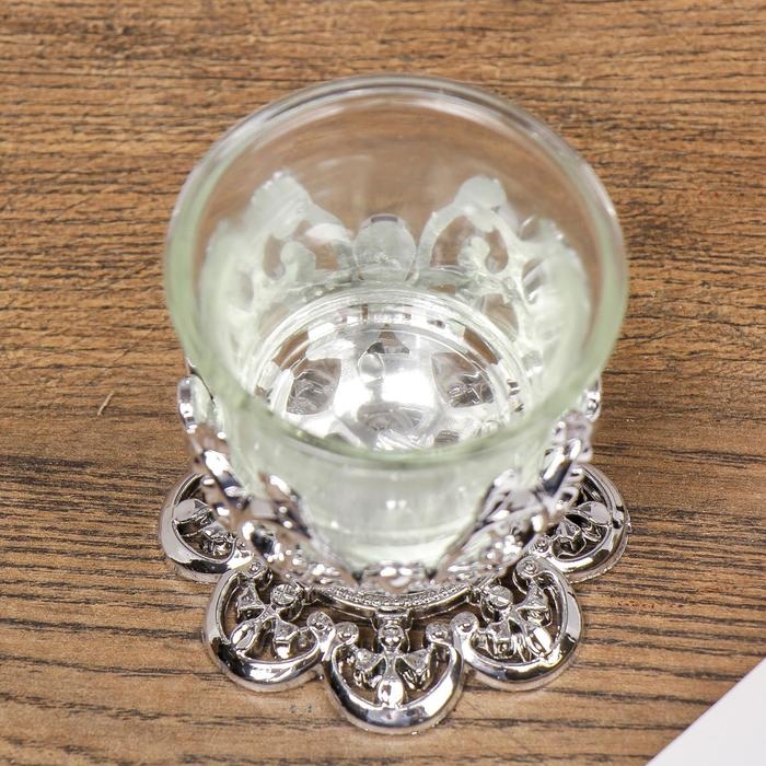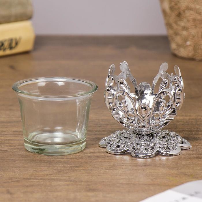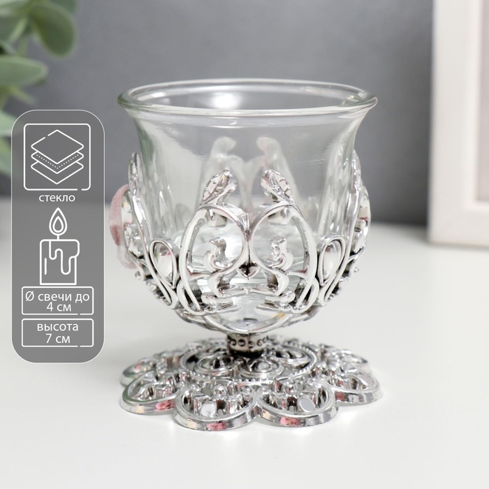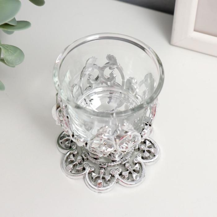 Подсвечник стекло 1 свеча "Узор", цвет серебристый