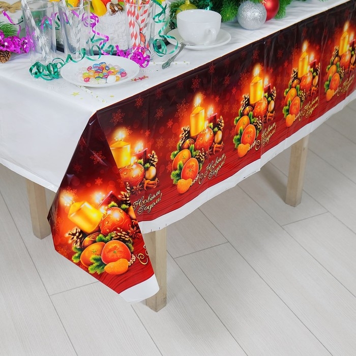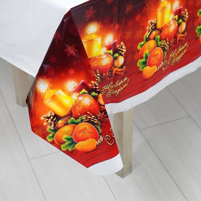 Новогодняя скатерть одноразовая «С новым годом» 137х180 см