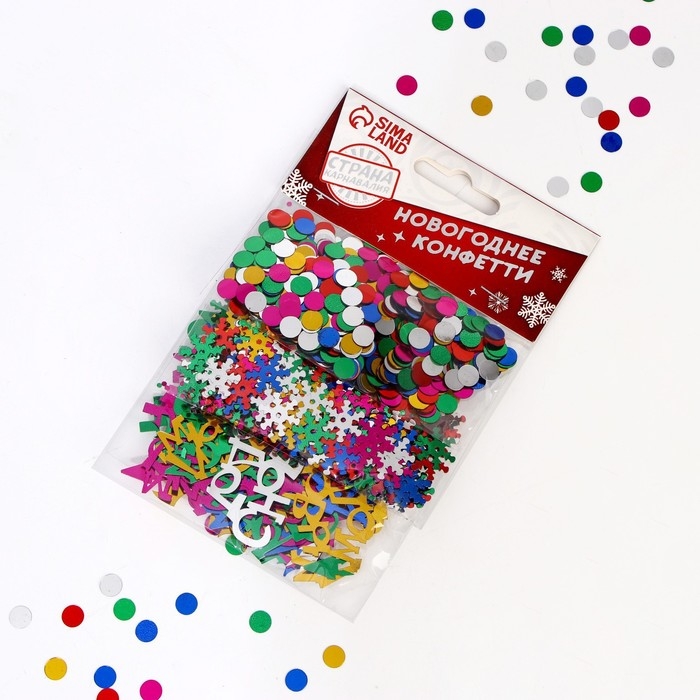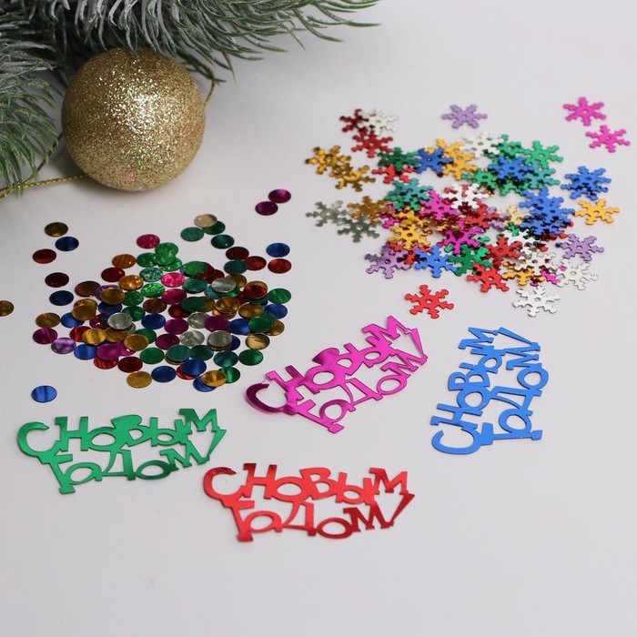 Новогодние конфетти «С Новым годом!» снегирь, цветные снежинки, 14 г.