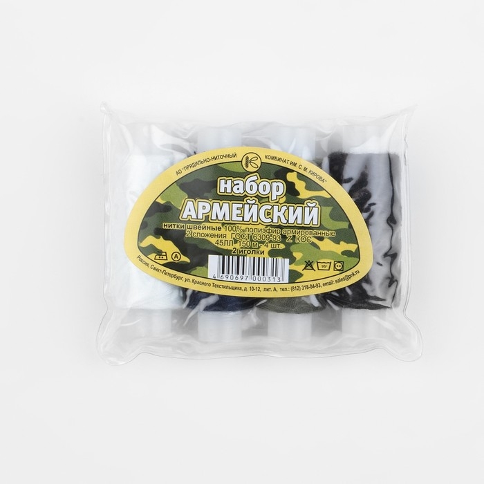 Набор ниток «Армейский» включает в себя иглы и самые необходимые цвета ниток, поэтому удобен для регулярного частого использования.