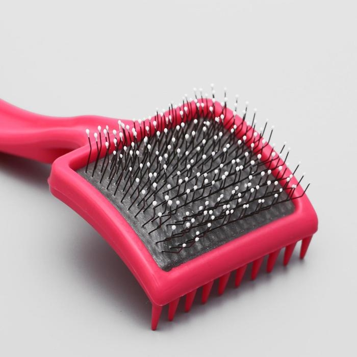 Щётка - пуходёрка средняя мягкая с каплями, основание 59 х 49 мм, розовая