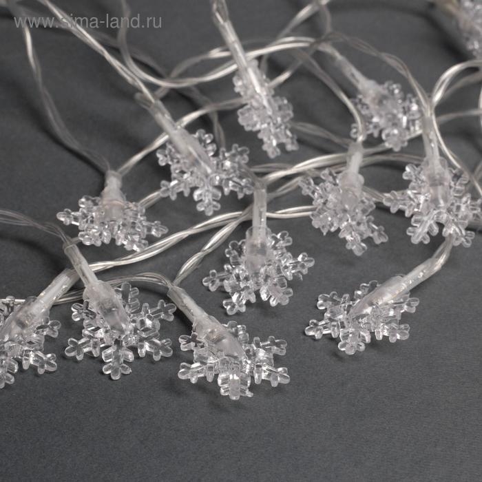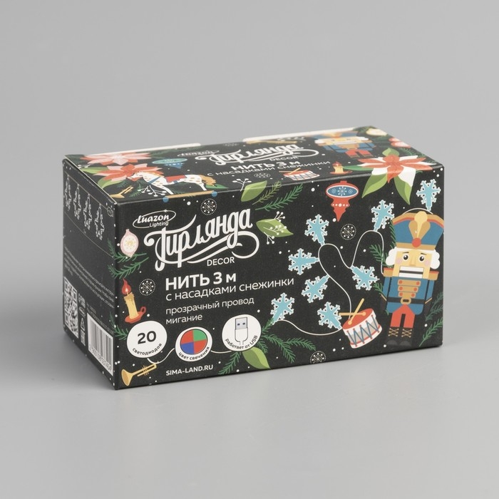 Гирлянда «Нить» 3 м с насадками «Снежинки малые», IP20, прозрачная нить, 20 LED, свечение мульти (RG/RB), мигание, USB