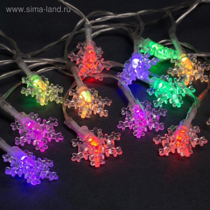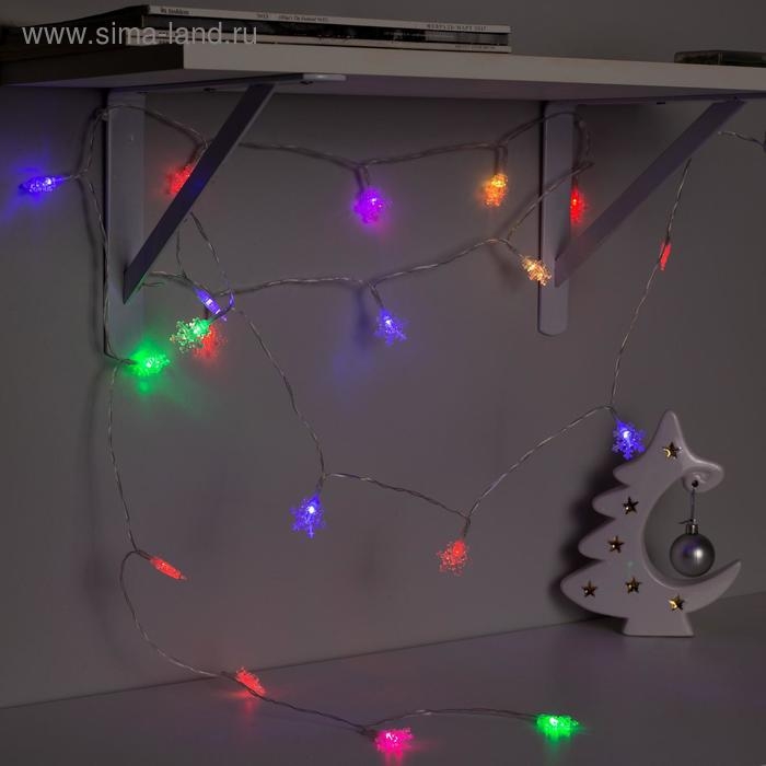 Гирлянда «Нить» 3 м с насадками «Снежинки малые», IP20, прозрачная нить, 20 LED, батарейки AAх3 (нет в комплекте), свечение мульти