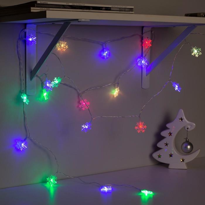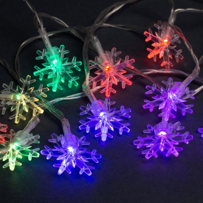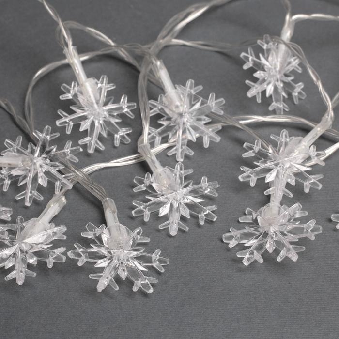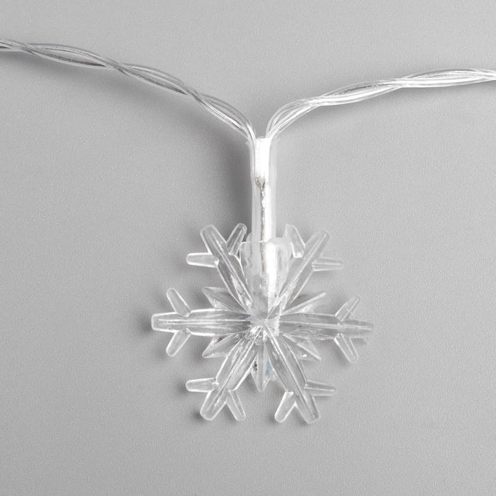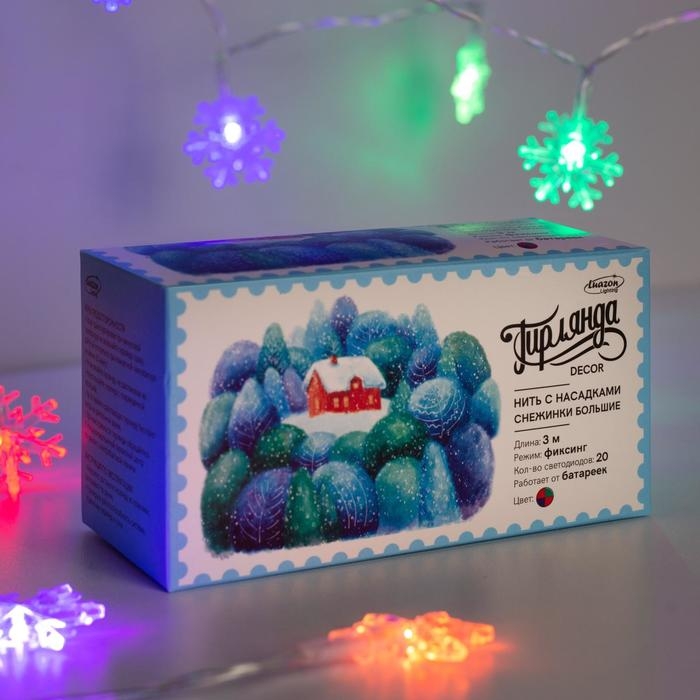 Гирлянда «Нить» 3 м с насадками «Снежинки большие», IP20, прозрачная нить, 20 LED, батарейки AAх3 (нет в комплекте), свечение мульти