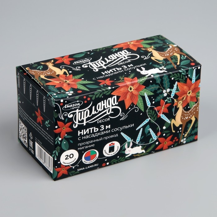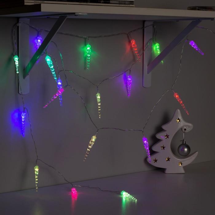 Гирлянда «Нить» 3 м с насадками «Сосульки 7.5 см», IP20, прозрачная нить, 20 LED, батарейки AAх3 (нет в комплекте), свечение мульти