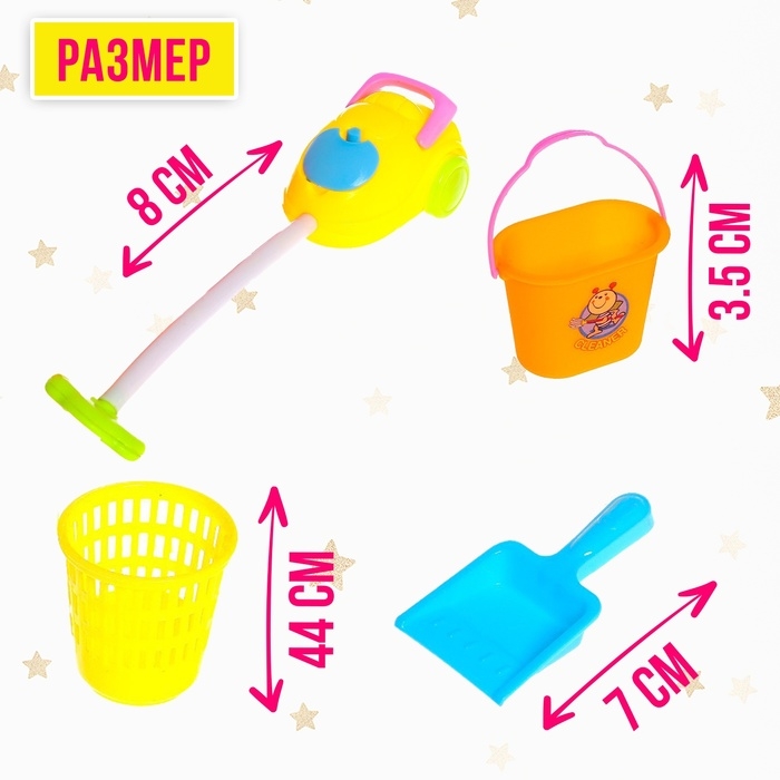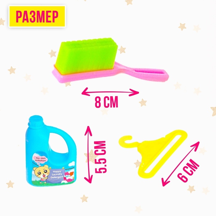 С набором аксессуаров дочурка с удовольствием будет помогать родителям по хозяйству, а также научит куколок содержать дом в чистоте. Миниатюрные предметы выполнены очень реалистично, девочка почистит мебель щётками, соберёт мусор пылесосом, а также сделает влажную уборку.
