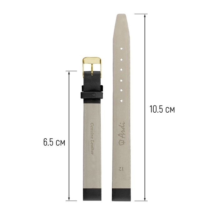 Ремешок для часов, женский, 12 мм, запряжник 65 мм, горт 105 мм, натуральная кожа