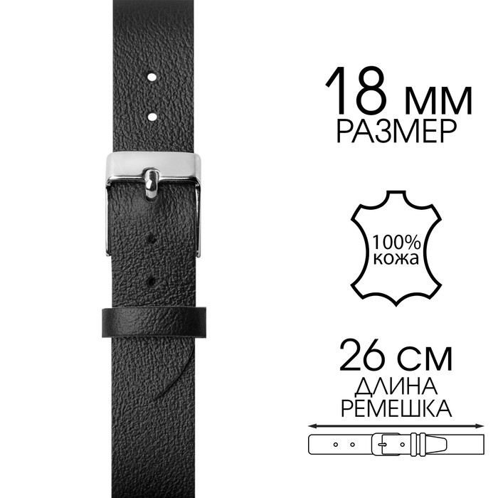 Ремешок для часов, мужской, 18 мм, натуральная кожа, чёрный