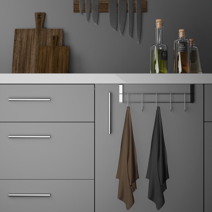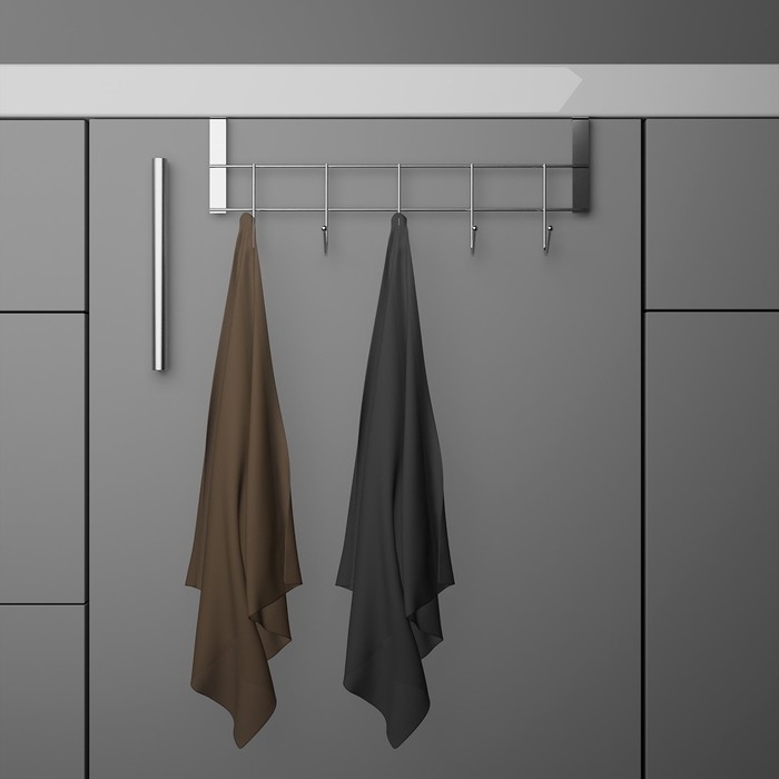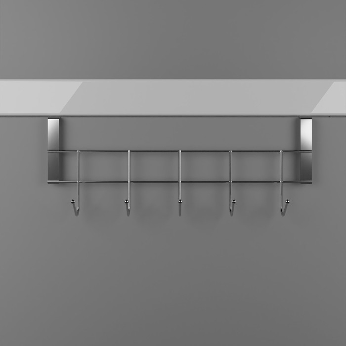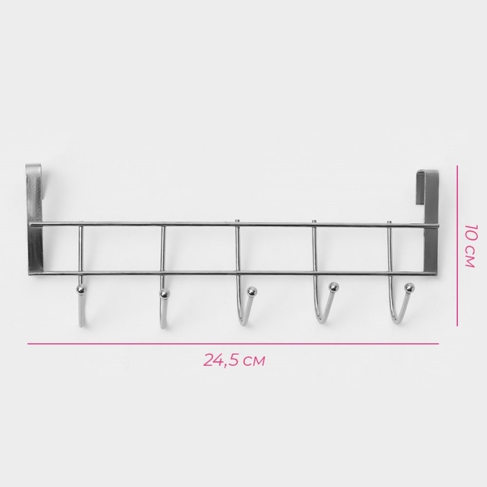 Вешалка на дверцу толщиной 2 см, Доляна «Блеск», 5 крючков, 24,5×10×6 см, цвет хром