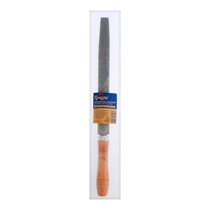 Напильник ТУНДРА, плоский, сталь У10, деревянная рукоятка, №2, 200 мм