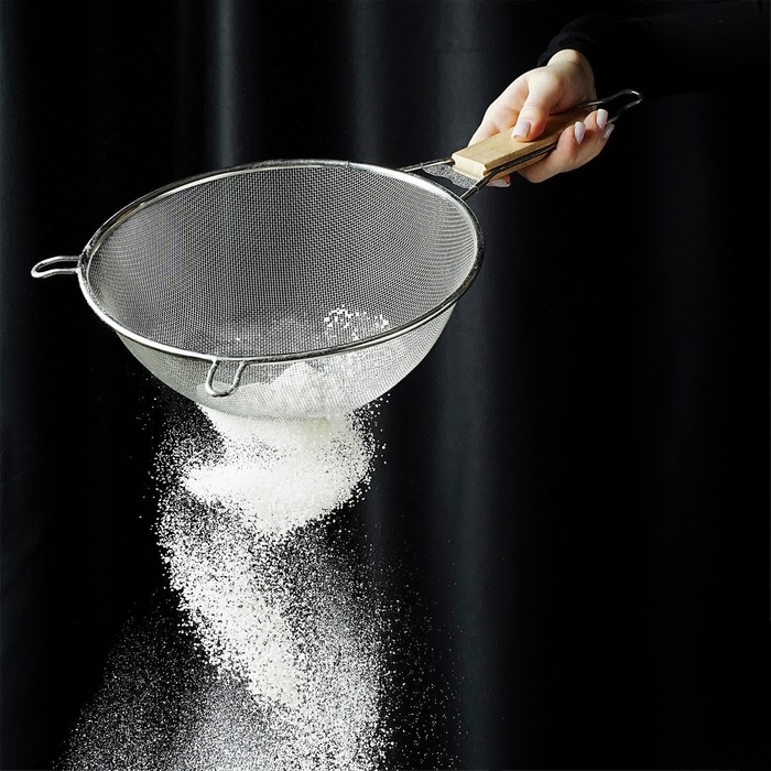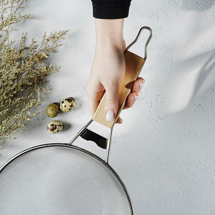 Если бы нас попросили составить список самого необходимого на кухне инвентаря, то сито совершенно точно в него бы вошло. Сито для просеивания с ручкой Доляна «Стандарт», d=24 см, цвет серебристый, изготовленное из стойкого к коррозии металла, станет вашим незаменимым союзником при процеживании:
