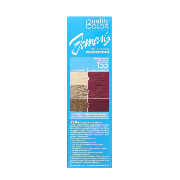 Стойкая гель-краска для волос Estel Quality Color российского бренда Юникосметик. В состав краски входит комплекс витаминов - С, В5, РР, действие которых направлено на укрепление и защиту волос от кончиков до корней. Витаминный комплекс повышает порог сопротивляемости волос к негативным внешним факторам, способствует восстановлению и обновлению клеток волоса. Гелеобразная консистенция краски очень удобна и позволяет проводить окрашивание в домашних условиях.