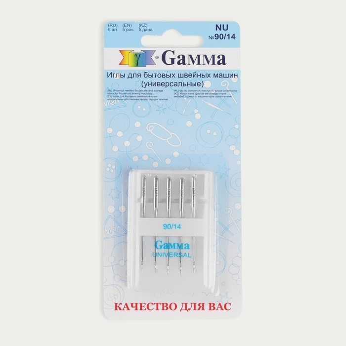 Иглы для бытовых швейных машин, универсальные, №90/14, 5 шт, NU