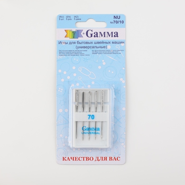 Иглы для бытовых швейных машин, универсальные, №70/10, 5 шт, NU