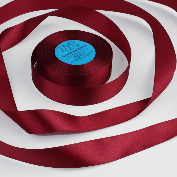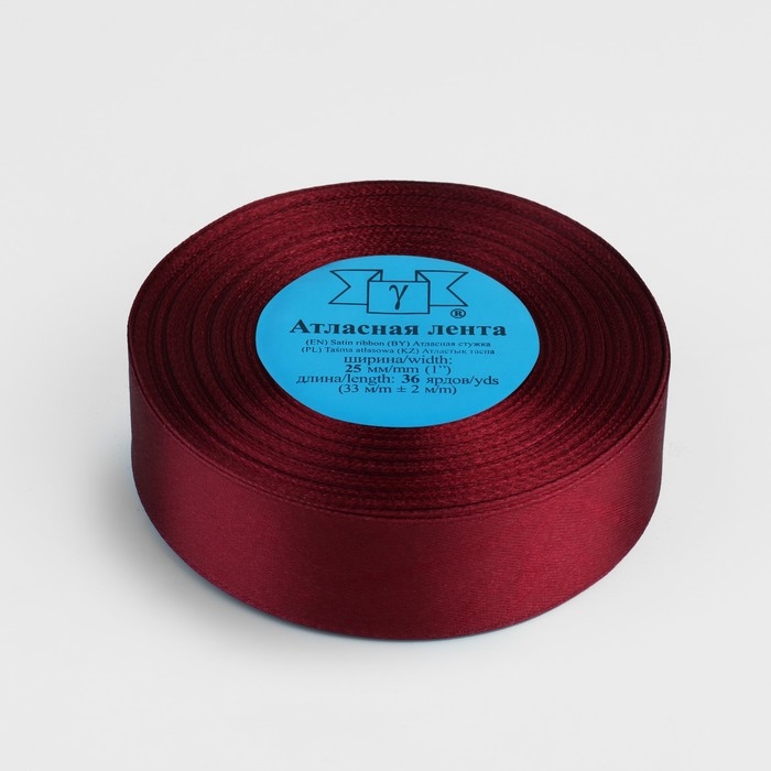 Лента атласная, 25 мм × 33 ± 2 м, цвет бордовый №048