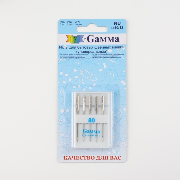 Иглы для бытовых швейных машин, универсальные, №80/12, 5 шт, NU