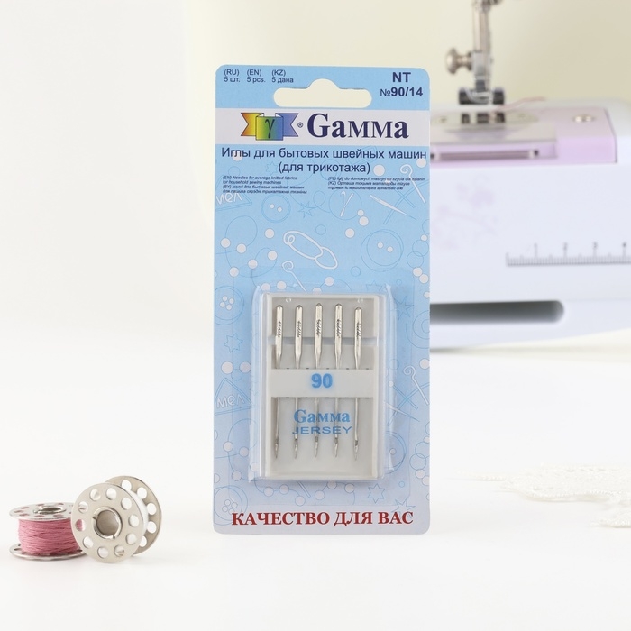 Иглы для бытовых швейных машин, для трикотажа, №90/14, 5 шт, NT