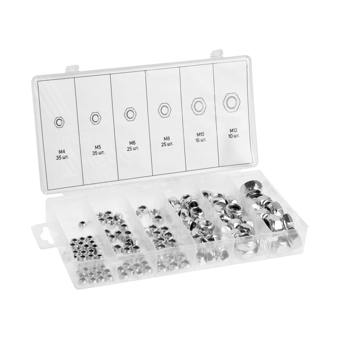 Набор гаек с нейлоновым кольцом ТУНДРА krep, 146 предметов