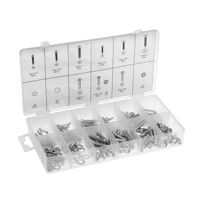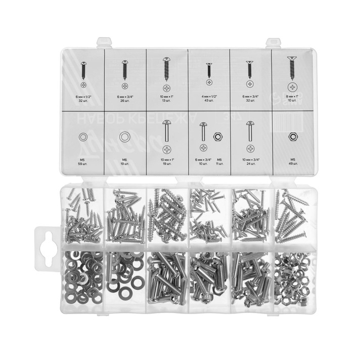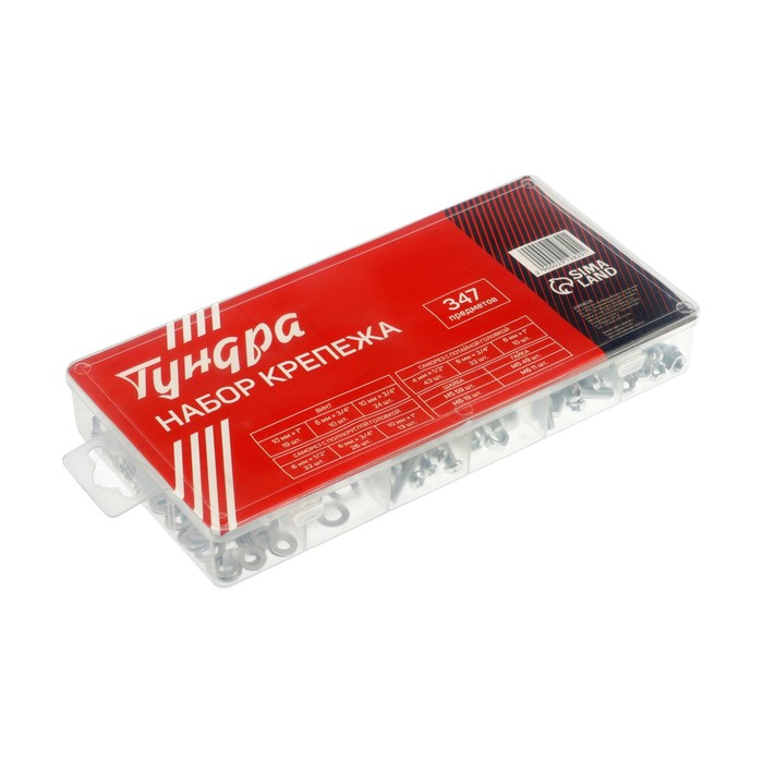 Набор саморезов, винтов, гаек и шайб ТУНДРА krep, 347 предметов