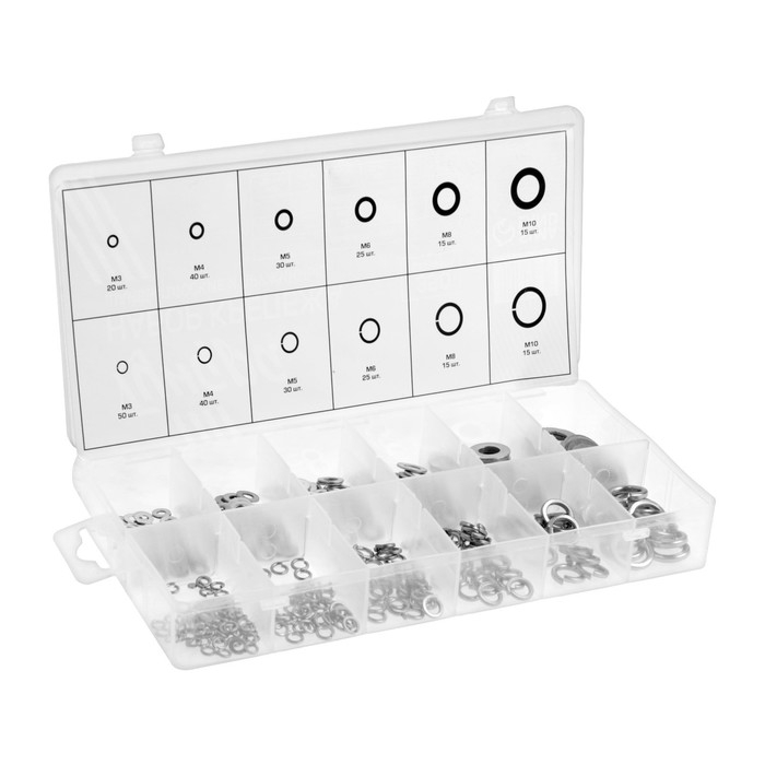 Набор шайб плоских и пружинных ТУНДРА krep, 350 предметов