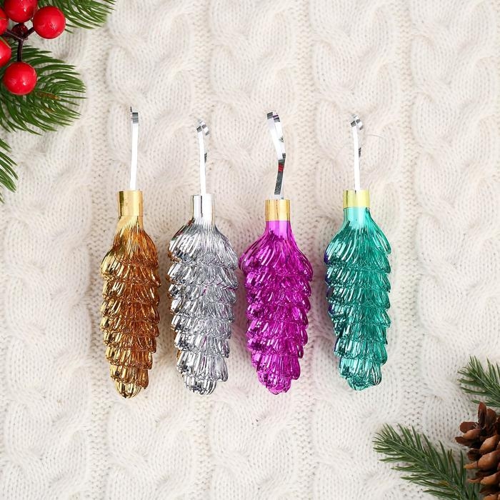 Украшение новогоднее фольга "Шишка" малая, микс