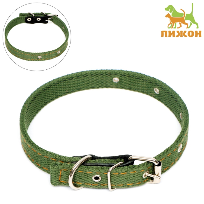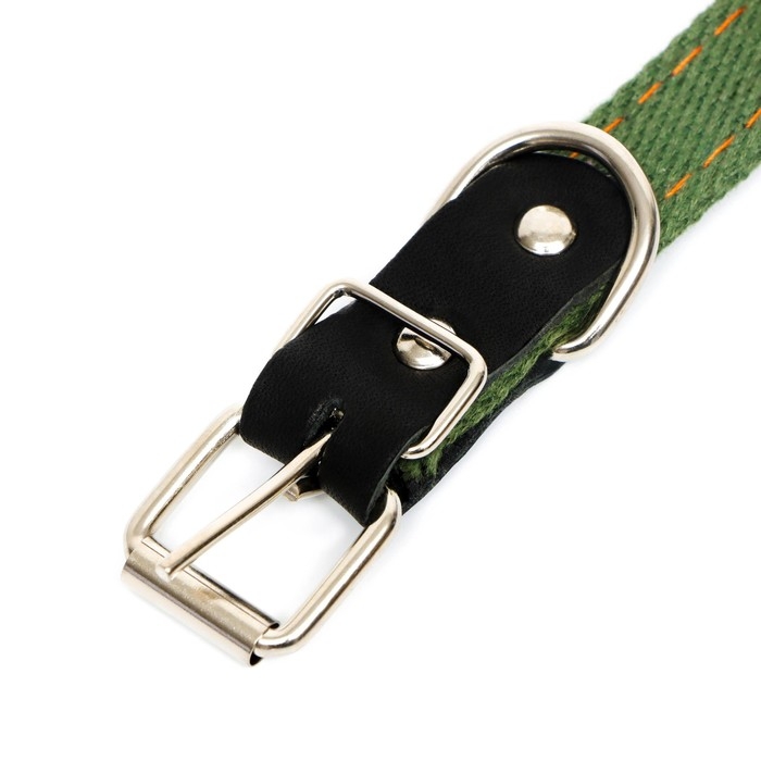 Ошейник брезентовый двухслойный, 50 х 2 см, ОШ 25-45 см, тёмно-зелёный