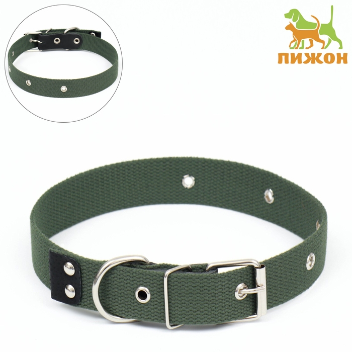 Ошейник брезентовый однослойный, 66 х 3 см, ОШ 33-60 см, тёмно-зелёный