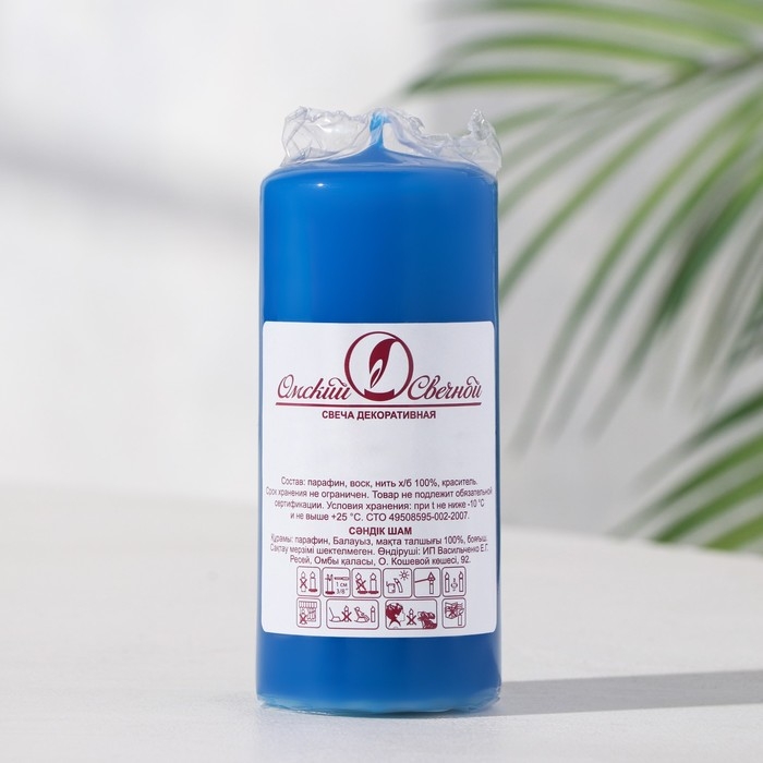 Свеча - цилиндр, 4х9 см, 11 ч, 90 г, синяя