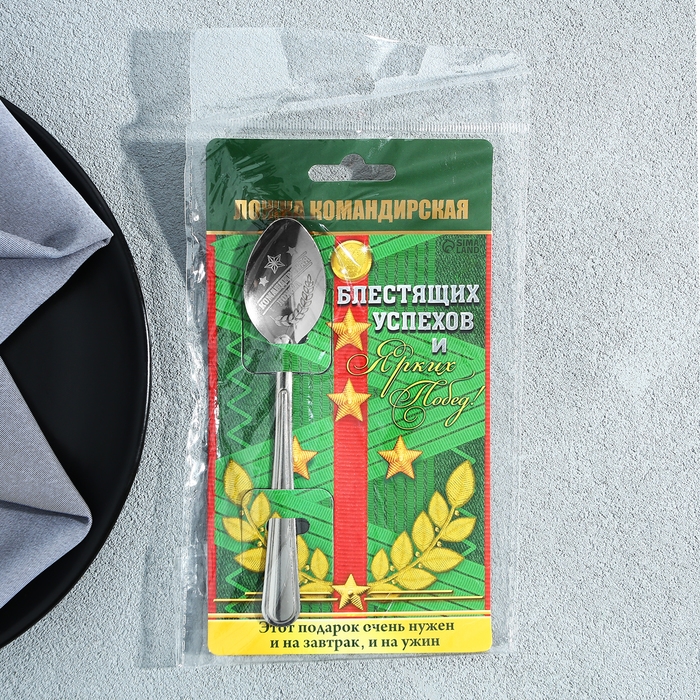 Ложка чайная с гравировкой «Командирская Ложка», на подарочной открытке, 3 х 14 см.