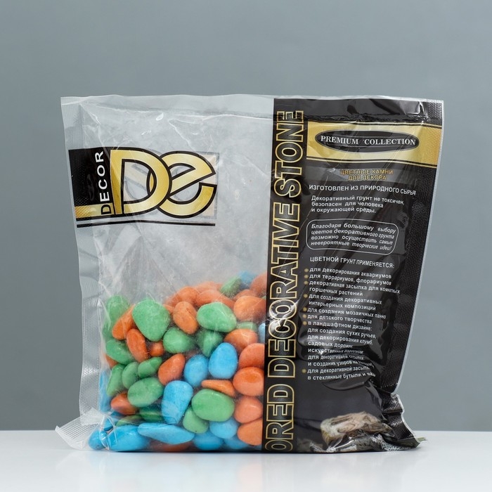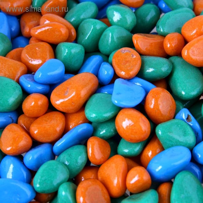 Грунт для аквариума "Галька цветная, оранжевый-салатовый-голубой" 800г фр 8-12 мм