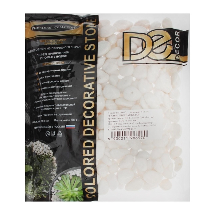 Грунт для аквариума "Галька цветная, белая" 800г фр 8-12 мм