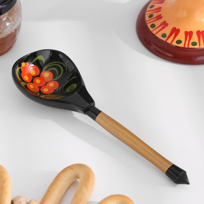 Ложка деревянная «Чернушка», полубаская, хохлома