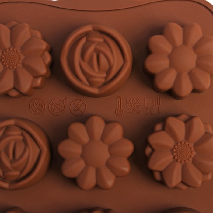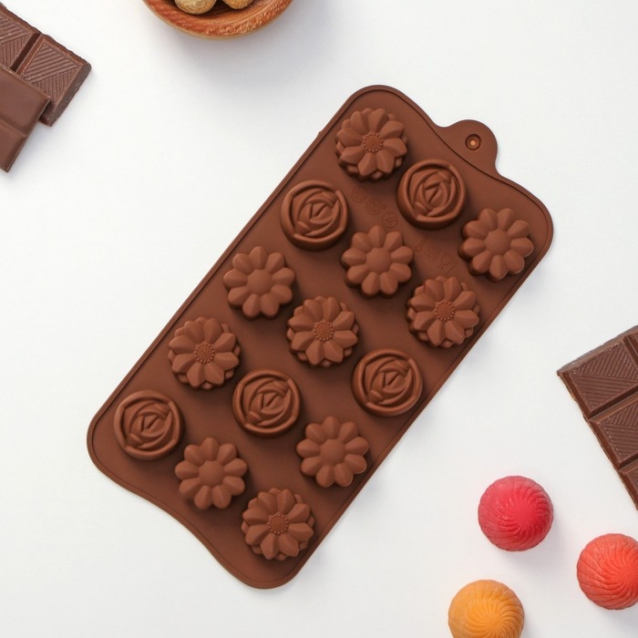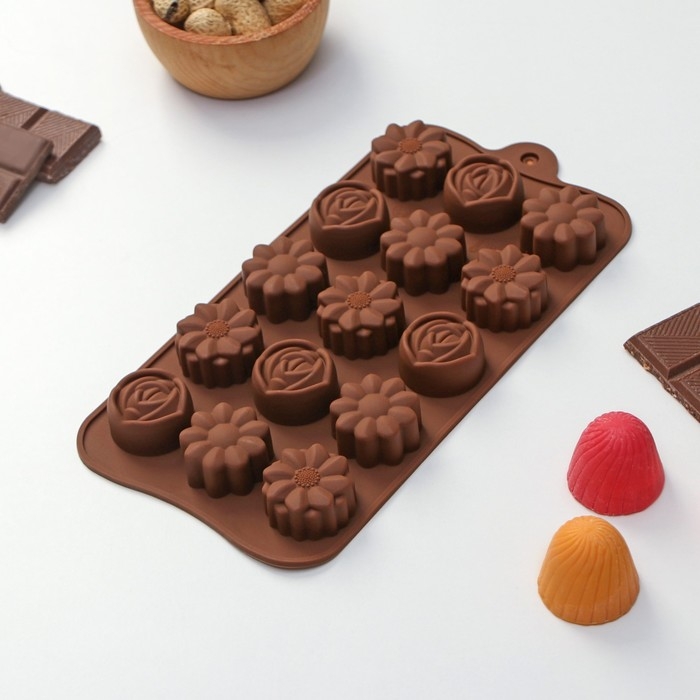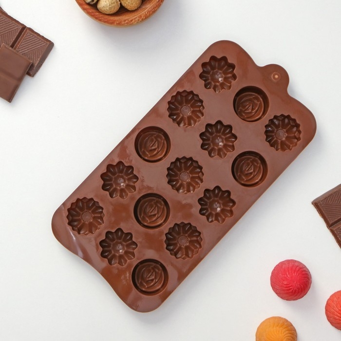 Форма для конфет и шоколада Доляна «Ассорти», силикон, 22×10,5×1,5 см, 15 ячеек (d=2,7 см), цвет коричневый