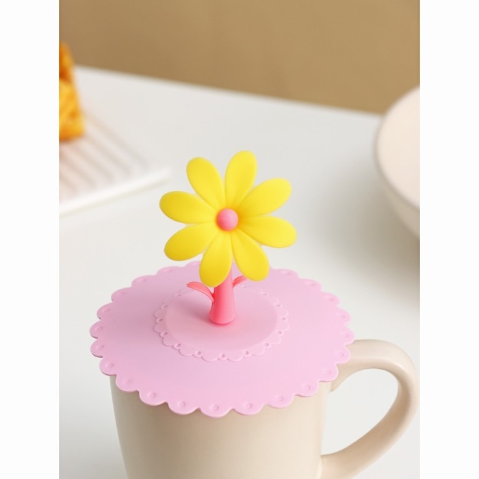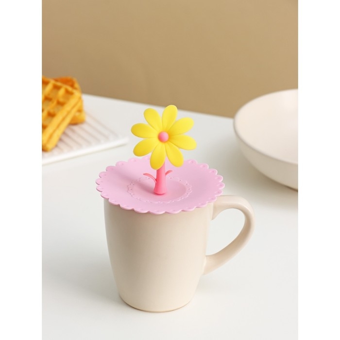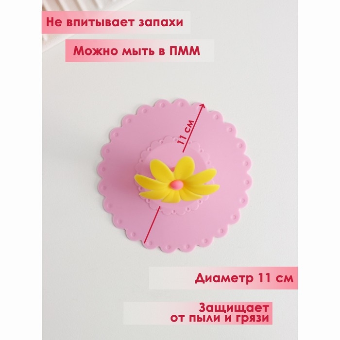 Крышка - непроливайка силиконовая Доляна «Цветочек», d=10.5 см, розовая