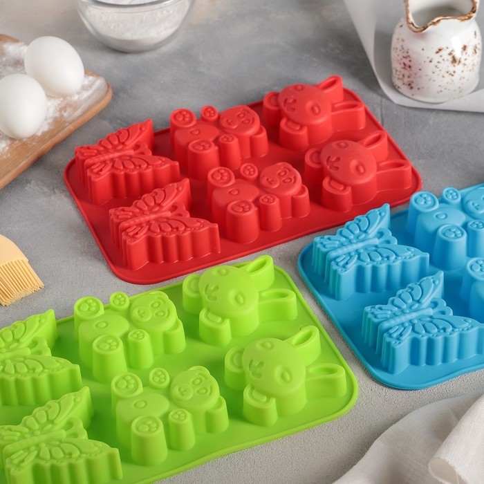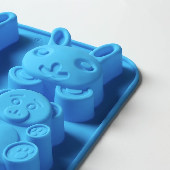 Форма для выпечки Доляна «Животные. Зоопарк», силикон, 26×17 см, 6 ячеек (7,2×6,4 см), цвет МИКС