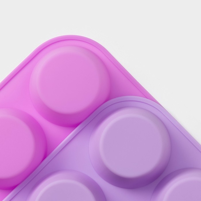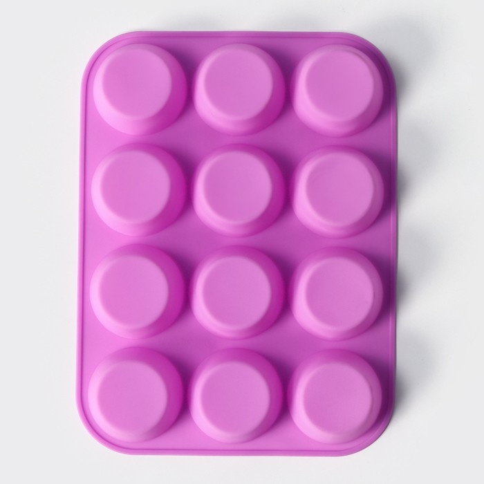 Форма для выпечки Доляна «Круг», силикон, 29×22×3 см, 12 ячеек, d=6,5 см, цвет сиреневый