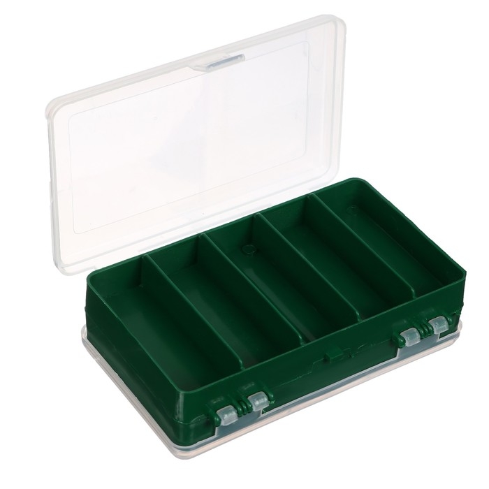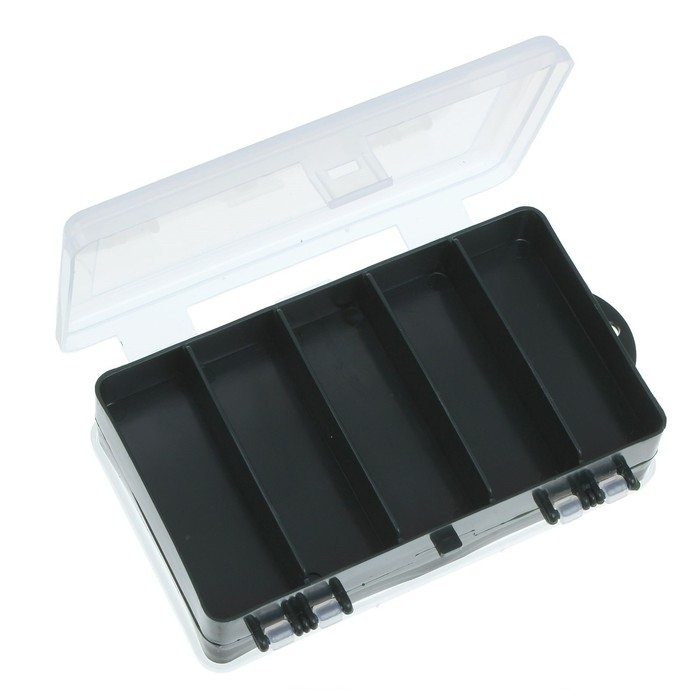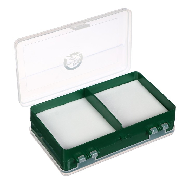 Двухсторонняя коробочка пригодится вам для хранения блёсен и мормышек. Выполнена из качественного полипропилена, не вступающего в химическую реакцию с мягкими наживками. Через прозрачную крышку легко разглядеть нужную приманку.