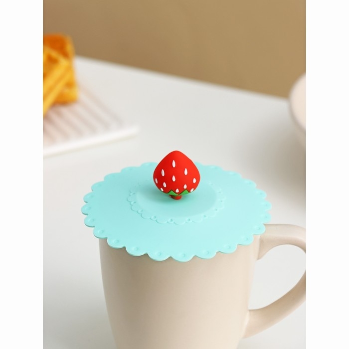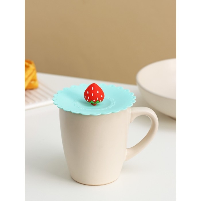 Крышка - непроливайка силиконовая Доляна «Клубничка», d=11 см, цвет мятный